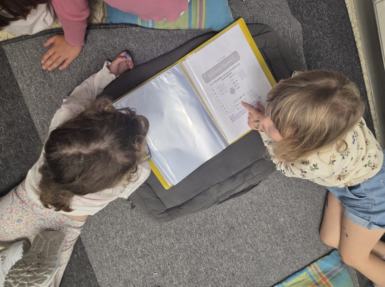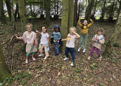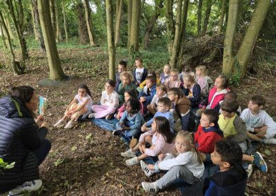 Nous expérimentons l’école DEHORS. Nous étudions les maths, le français et les sciences sous les arbres. Cette pédagogie favorise la reconnexion à la nature, le bien être et la concentration.