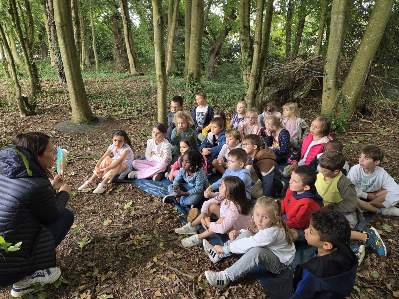 Nous expérimentons l’école DEHORS. Nous étudions les maths, le français et les sciences sous les arbres. Cette pédagogie favorise la reconnexion à la nature, le bien être et la concentration.