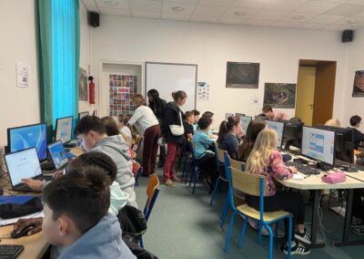 Mardi 25 novembre, les CM2 ont découvert le collège Saint Pierre à travers une journée complète : visite du CDI, création d’un avatar en salle informatique, séance de badminton, géographie avec utilisation du logiciel Google Earth, déjeuner au self, puis cours de français sur l’origine des mots.